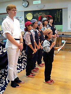 披露する与えられた時間がたくさんあり獅子舞だけでは体力の限界だわと急遽子供たちとアンドリューで楽団を結成!鳴り物隊長の娘であるひかりちゃんのピアノ伴奏で我が娘まひろフルートのソロ。それからかわいい姉妹ひかりちゃん、のぞみちゃんによるピアノ連弾とフルート(まひろ)とアンドリューのリコーダーのアンサンブルです。ほんの少ししか皆で合わせて練習していないのに難なくこなしてしまうみんなの度胸♪あっぱれじゃーっ!!写真は我会のマスコット最年少ののぞみちゃんが最後に作文を読んでくれました♪かわいいねーぇ