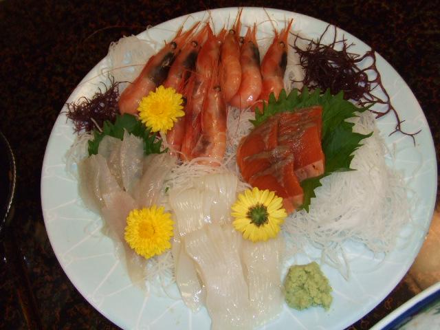 お刺身はホテルからのサービスだって!いいの?いいの?