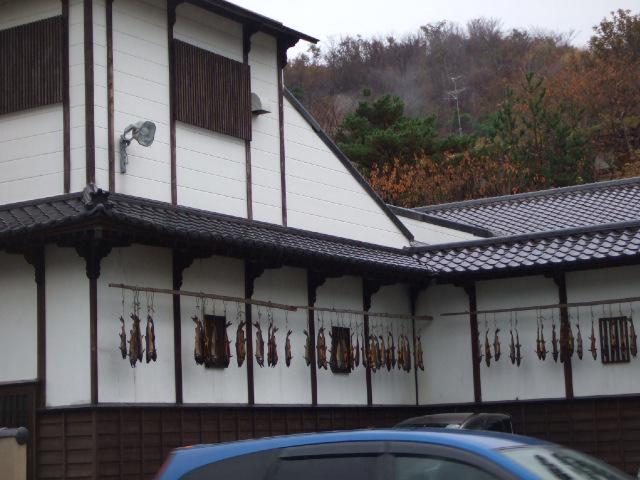 ホテル旧館の軒先にたくさんの鮭の寒ざらし?こちらは正真正銘本物です。