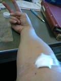 見て下さい…これは先ほど腎臓尿道膀胱の影像をレントゲンで撮る為に3日前からガス抜きの薬を飲み今朝は絶食にて検査を受けましてそのときの造影剤注射の後であります!結果は異常なし♪でも小鳥のような心臓のワタクシは大嫌いな注射をビビってあまりに緊張したものですから検査室に音楽を流してくださりBGMを聴きながらの撮影となりました(恥!)親切にしてくださった看護婦さんレントゲン技師さんありがとうございました〜!皆さん健康にはくれぐれにも気をつけましょう エヘヘヘ
