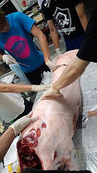ちなみに頭蓋骨を取るためにギロチンした豚さんの頭部というかお顔の
