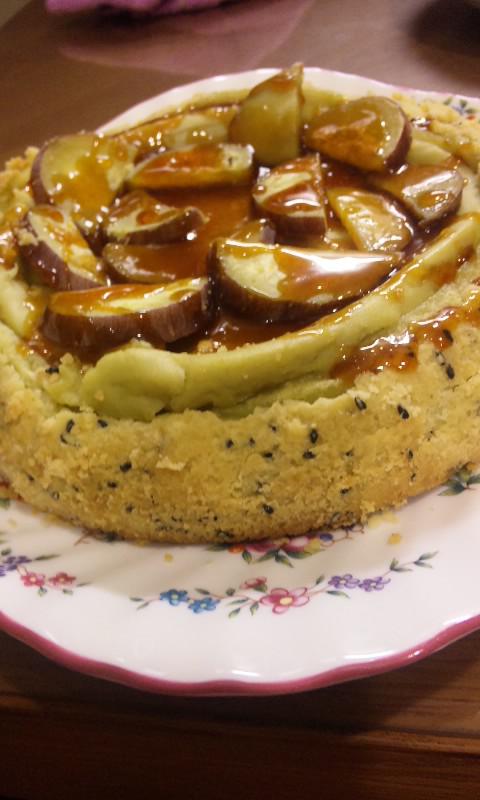 さらに上には輪切りしたサツマイモを乗せ、カラメルをかけました!!