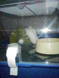 我が家の娘(10歳)のペットのハムスターのピーチでする。・・・・実は本人(ハムスター)ではなく替え玉なのです。実は3月の末の春休みに娘は祖父と祖母に沖縄旅行に連れて行ってもらいました。たった二泊三日のスケジュールなのに、留守宅では悲劇がっ!!明日帰ってくるという夜に娘からメールがとどきました。「ママ、ピーチにちゃんと餌をやって面倒してね」その内容を見て餌は十分あるし元気だし大丈夫大丈夫とたかをくくる私。深夜近くに帰ってきた夫がトイレに入ると・・・水洗タンクの上に乗せていたゲージが(夜ハムスターが活動してうるさいのでトイレに置いていた)何故か落下していました・・・びっくりした夫は急いでゲージを持ち上げるとその下には白いティッシュが・・・テッシュを拾おうと触れたらそれはテッシュではなくゲージの下敷きになってぺっちゃんこになって死んでいたハムスターだったのです!!なんじゃこりゃーーーっ!!状態の夫の姿をご想像くださいませ。・・・・・・やばい!やばすぎる!あれほどハム公のことを頼まれていたのに・・・次の日山形市まで仕事で行った夫に帰りに真っ白いハムスターを買ってくるようにお願いいたしました。そして何事もなかったようにゲージにいれました。もちろん娘にはこの史事実は内緒です。・・・・・ごめんね!!許してぇぇぇぇぇ懺悔いたします。
