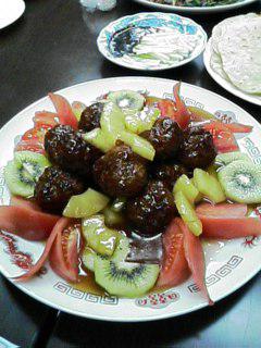 メニューは【糖醋元子】(大肉団子とパインの甘酢がらめ)でーす♪この肉団子の作り方は実は赤湯の肉団子で有名な中華料理店より先生が教えていただいたのだそうです!! でもそのお店の食べたことないから同じ味なのかは不明・・・今度行ってみてやる!