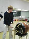 Nice to meet you♪なーんて会話は交わされずしっかり日本語でコンニチハを致しました。アメリカ オレゴン州のポートランドからいらっしゃったのだそうです。日本語はあまりお得意ではなく通訳は電子辞書でありました。シーズンオフの獅子舞稽古は一ヶ月ぶりですが思わぬカッコイイ若者の来訪にお母ちゃん部隊はハリキリました!ワタクシなんかは太鼓ぶちすぎて背中筋肉痛・・・
