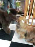 去勢手術から二週間後抜糸も済んでその間シャンプーもずっとできないまま、毛も伸び放題でワタクシの手におえなくなったのでワンコのカットに連れていきましたぞい。お犬様を預けてお迎えに行ってびっくりっ!!!もう別犬っ?!見事にプードルに大変身してますっ!(今迄ははっきり言ってボロモップでした。)お耳にはリボンまでつけていただいてますわい♪ダックスのゆずちゃんと仲良く遊んでもらいました