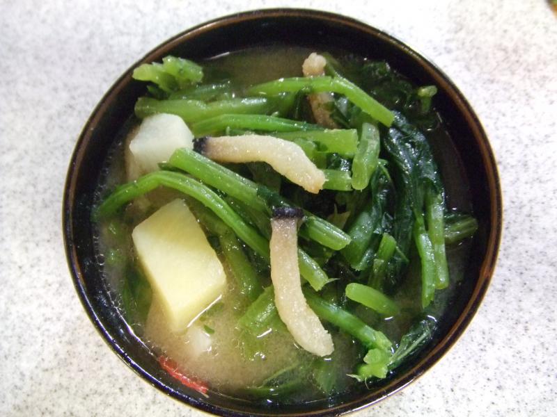 ちよっとおそい話題ですが・・・毎年山菜の時期になると必ず食卓に出るのがクジラ汁。味噌汁の具に山菜のミズ、じゃがいも、塩クジラ(軽く塩抜きして)がはいります。クジラの独特な脂っこいコクのあるダシが出て、シャキシャキしたミズの歯ごたえとのサッパリ感とミックスしてもう絶妙な美味しさ♪田舎に生まれてよかったぁ〜!皆さんも今年は召し上がりましたでしょうか?
