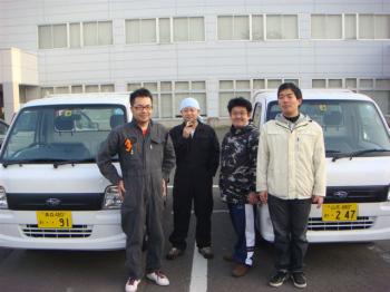 現地にて軽トラック2台を社会福祉協議会へ受け渡す