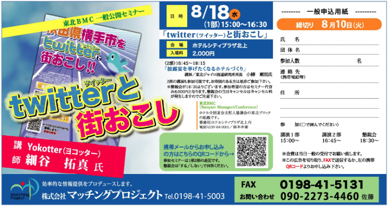 ▼twitter(ツイッター)と街おこし 公開セミナーのご案内