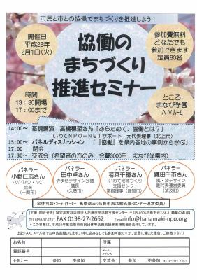 2月1日に「市民と市との協働でまちづくりを推進しよう!」というテーマにて、セミナーを開催させて頂きます。
