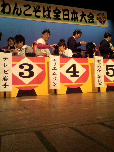 2月11日の花巻市文化会館は、盛岡のわんこそば選手権をはるかにしのぐ異様な熱気に包まれていました。我らがエフエムワンチームは、食士・高橋礼子、給仕・落合昭彦という最強?の布陣で臨みました。