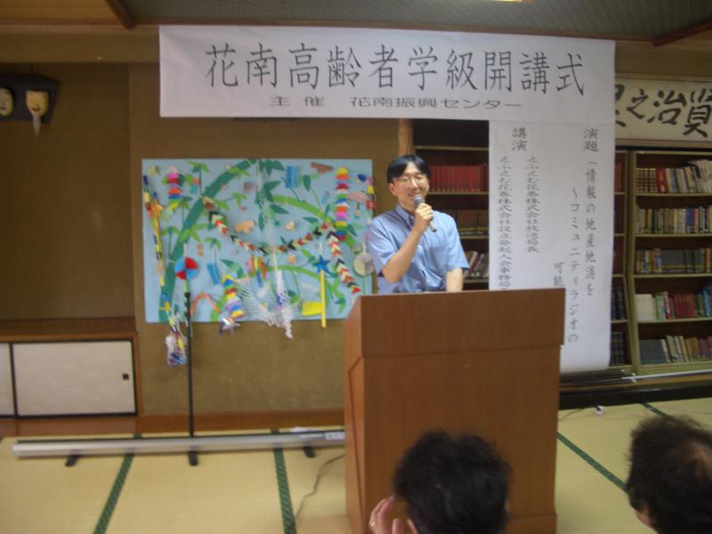 さる7月2日の土曜日、私は花南(かなん)地区の振興センターにおじゃましてコミュニティラジオの可能性と地域振興について、地域の皆さんとお話してきました。とても暑い日でしたが、みなさんしっかりご静聴くださいました。この地区は宮澤賢治の詩碑をはじめ様々な石碑や句碑などが残る、言わば名所旧跡の宝庫でもあります。そうした何気ない(と地元の人は思っている)地域の財産の素晴らしさを、地域の人にまず理解してもらうことがとても大事だと私は確信しています。