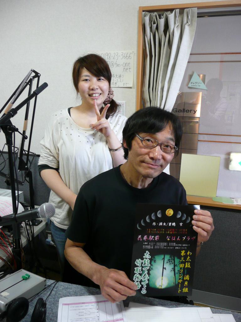 宮さんと言えば、宮沢賢治に魅せられて八丈島から花巻・東和町にいらした劇団主宰兼俳優さんであり、太鼓チーム「満月組」の代表でもあるマルチなアーティスト。エフエムワンでは開局時から朝の顔として活躍してくれていました。