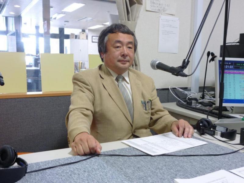 俳優の様な、作家の様な、はたまたニュースキャスターのようなこの方は、我がエフエムワンがニュースのネタ元でも毎日お世話になっている岩手日日新聞社花巻支社長の千田昭彦さんです。新年度から月に1回「フラワーガーデン」の金曜日に出演してもらっていて、きょうは6月の出演日でした。