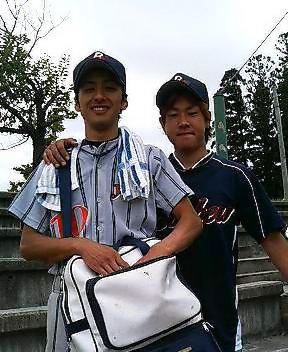 左側がキャプテンの伊東ぴろし君です。みんなからピットの愛称でよばれています。けっして頼りがいのあるキャプテンとは言えませんがあいきょうのあるとてもいい人です。この人も若旦那の高校の先輩です。右側は豊富な投手陣の一人の剛君。春先は調子が良かったのですが、最近は肩が痛むらしく自分のピッチングが出来なくてはがゆいみたいです。バッテングも良くて投げないときは代打の切り札的存在です。