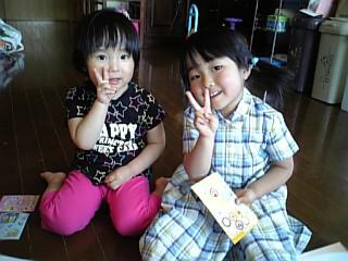 二人でおしゃべりしながらシールを貼って遊んで可愛いです(>_<)