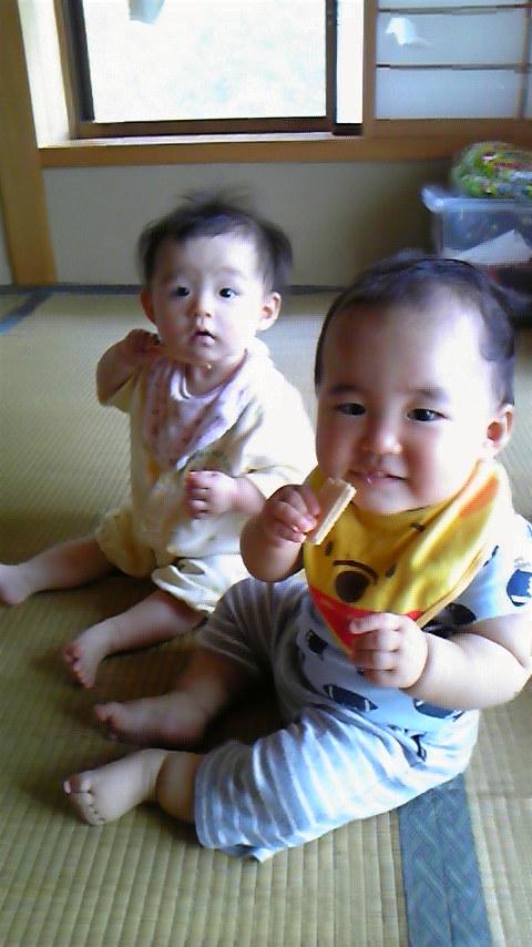 今日はソラと同い年の姪とソラの様子をアップします。姪、通称みーたんもいつの間にかおすわりができるようになって仲良くおやつタイムです☆