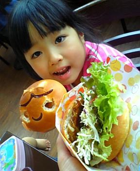 カエデは一目見てフラワーロールちゃんのパンが気に入ったらしく、即買い・即食べ♪なぜか目玉から食べるのでした。。。