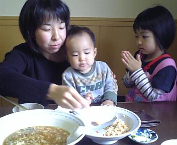 ソラにごちそうさまのやり方を教えるカエデ(^O^)