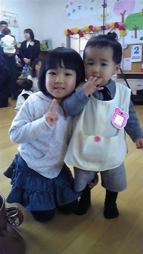 そんな次の日の入園式だったので、保育園の玄関で少々入るのを渋ってました。でも、中では私、父ちゃん、カエデも一緒だったから泣かずに参加してくることができました!