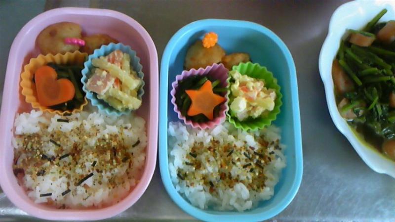カエデのサラダリクエストに応えてマカロニサラダは頑張ったものの手抜きお弁当でした〜。