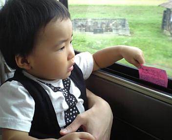 大好きなバスに乗っているのにテンションが低いソラ( ̄▽ ̄;)