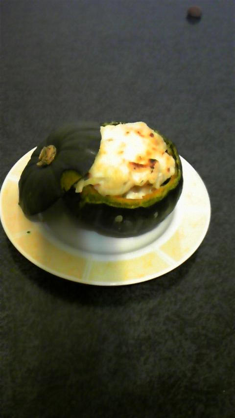 坊ちゃんカボチャがあったので、グラタンを詰めてみました☆
