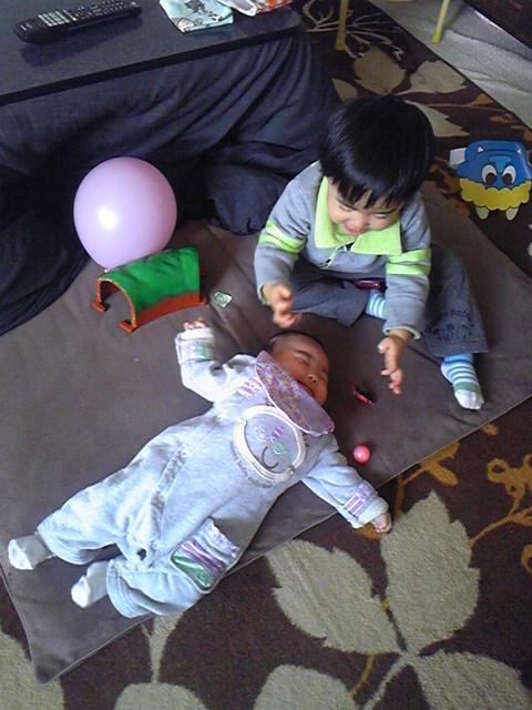 小春の周りにオモチャを置いてあげて貸してるつもりらしいですf^_^;