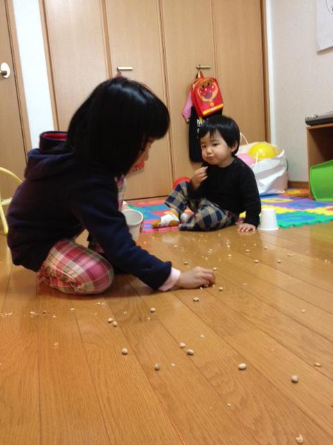 まいた豆を食う小鬼ども