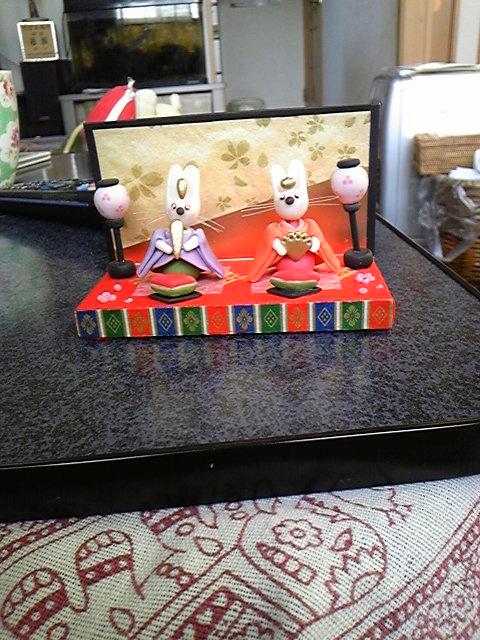 我が家のミニ雛飾りです☆しかも、去年アパートのお隣りの奥さんが引っ越す時にいただいた物。