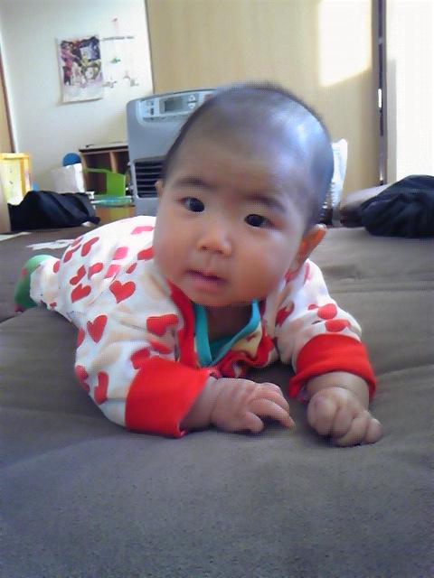 小春も今日で五ヶ月です。すっかり首もすわり、俯せにするとしっかり頭を上げて喜んで周りを見ています。