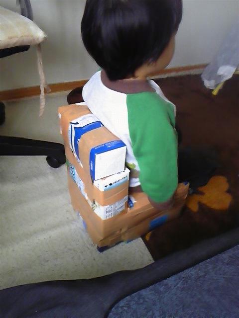 中に新聞紙やチラシをギュッギュッとつめたらけっこう丈夫な椅子が出来ましたよ。