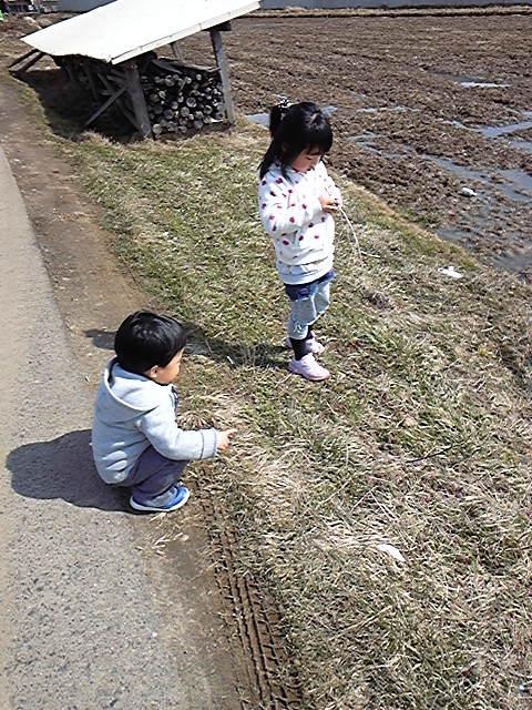 午後は近くのカワチまで子供達と散歩しながら買い物。すると、たんぼ横に小さな草花が咲いていました☆春ですね〜。