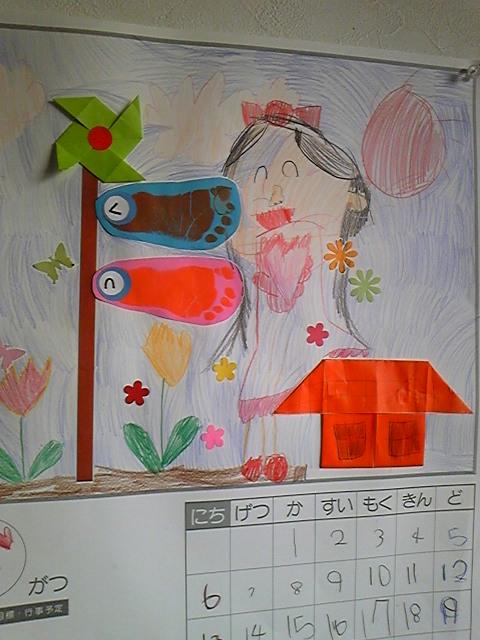 子育て支援センターで、小春の足形を使ったこいのぼりカレンダーを作りました☆