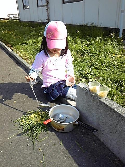 外あそびで、鍋とカップとおたまを使い「わんこそばで〜す」だって(笑)