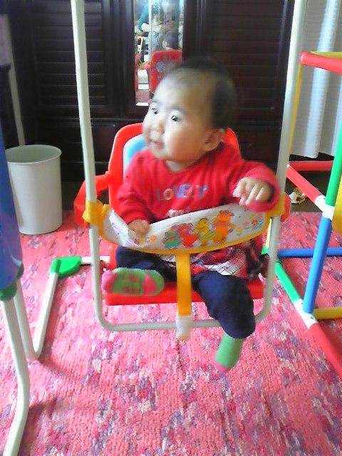 おすわりもしっかりしてきたので、ブランコに乗っけてもけっこう大丈夫でした☆
