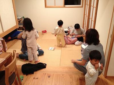 先日幼稚園やヤマハ音楽教室でカエデと仲良しのちさちゃんファミリーのご自宅で、大人五人と子ども七人の三家族合計12人でお泊まり会をして来ました〜(>_<)