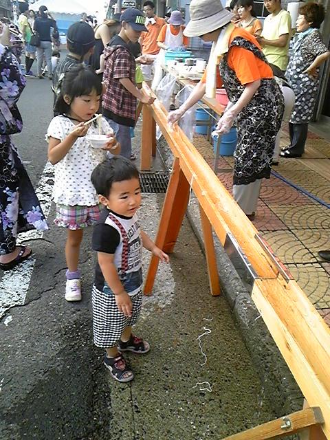 楓がやりたいというので、名物の流しそうめんも食べ、出店で買って食べ。