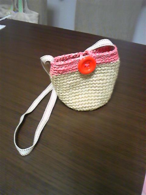 余っていた麻紐を使い、楓のポシェットを作りましたo(^-^)o