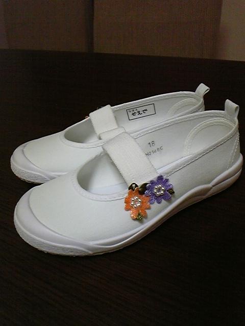 で、早速新しい物を買いに行ったけど、白のしかなくて、つまらないので百均でお花の飾りを買ってワンポイントで付けてみました☆これだけで可愛くなりましたよ〜。