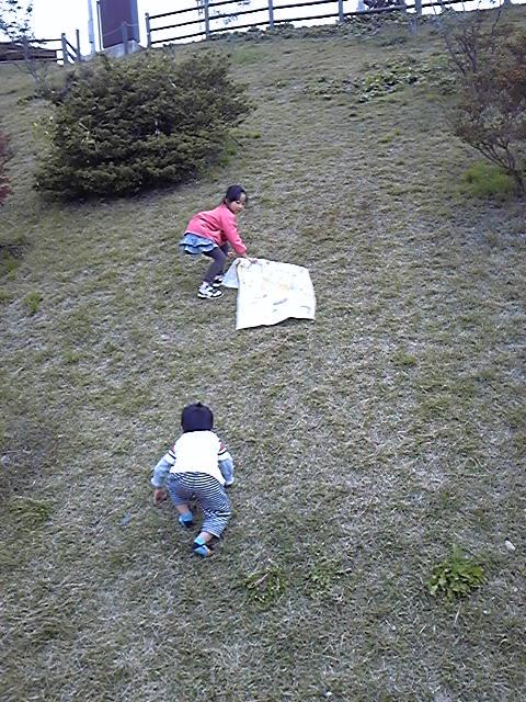 シートで坂を滑りたいらしいですf^_^;