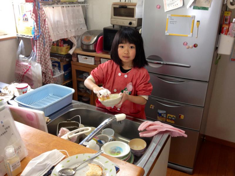 今朝はママとソラ小春がそれぞれの保育園に出発したあと、カエデが自ら進んで洗い物をやってくれました(≧∇≦)