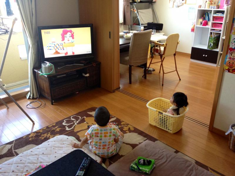 カエデは小学校へ行き、保育園チームはEテレを観ています^_^