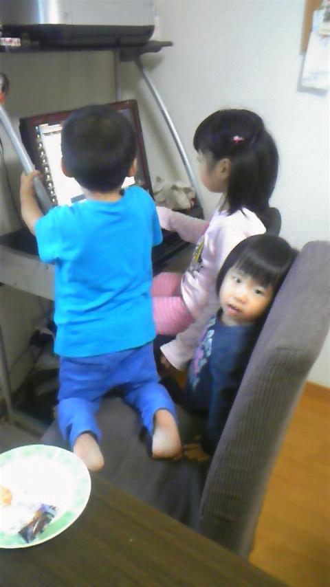 病院終わってソラを昼過ぎに迎えに行き、かえちゃんも学校から帰ってきて、三人でパソコン見てます。
