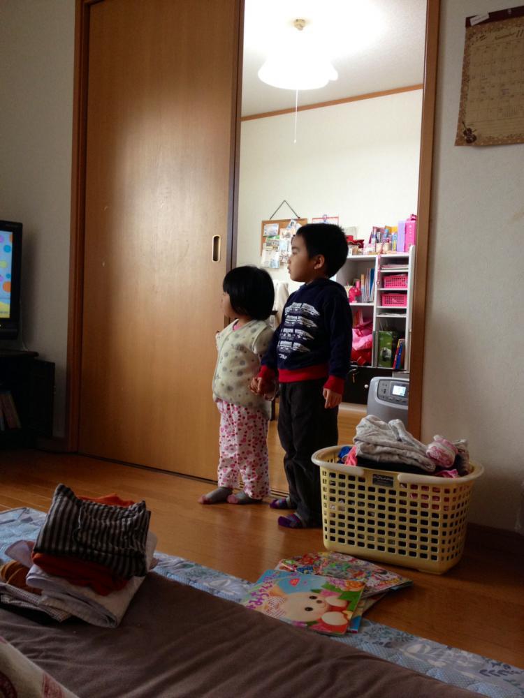 ふと目を向けると手を繋いでテレビを見ていました(笑)