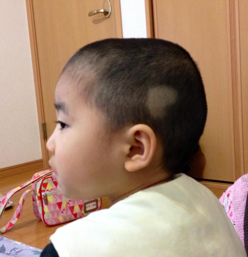 ママがバリカンの刃の長さを間違えてジョリった形が、奇跡的にハートマークになってました(笑)