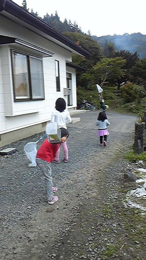 虫かごに網を持って、秋の虫を追うわらすたち。