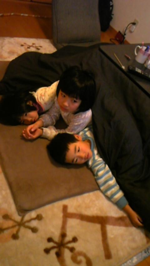 三人で仲良くぎゅうぎゅうこたつに入ってる(笑)