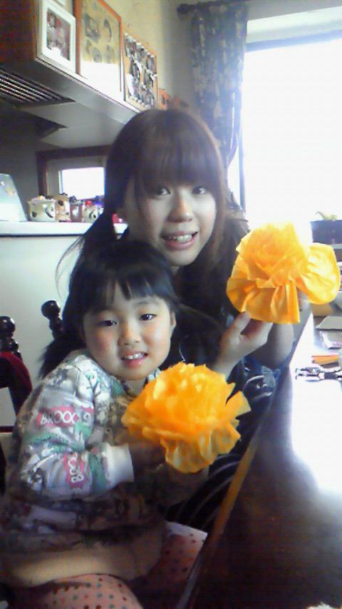 ちなみに☆写真なんですが、紙で作るお花を姪のカエデと一緒に作りました☆フラワーズキャンペーンという事で♪郵便局の窓口をお花畑にしょうとおもって(*^。^*)♪