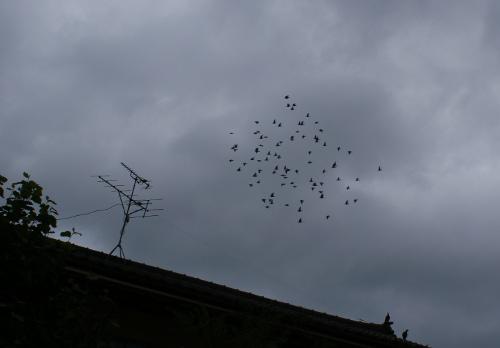 一生懸命飛んでいる鳩君たちと屋根で逃避している二羽の鳩君の写真を「ブログ」に掲載します。